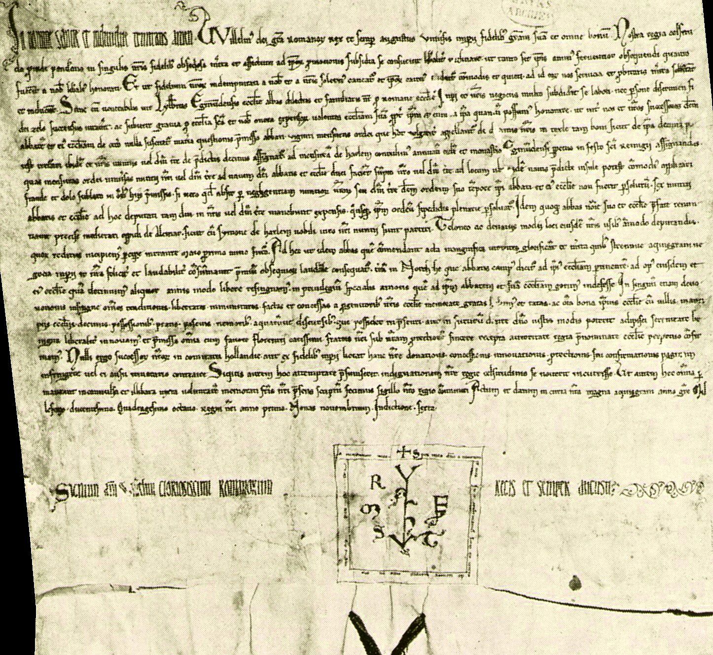| De uitvaardiging van Willem II uit 1248 inzake de opdeling van grondgebied van Alkmaar. Noord-Hollands Archief, Archief Abdij van Egmond, toegangsnr. 356, inv.nr. 45 (voorheen NA, Archief Abdij van Egmond, inv.nr. 437). |