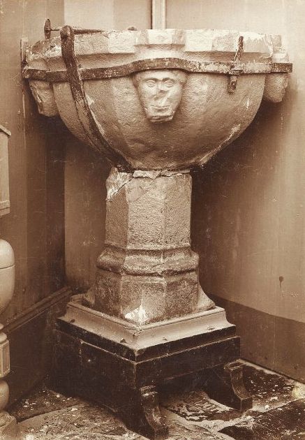 Til Schönlank-van der Wal; Middeleeuwse stenen doopvonten in Noord-Holland, in: Bulletin van de Stichting Oude Hollandse Kerken 40 (ISSN 0166-3445, Lente 1995), p. 3-14, speciaal p. 9: "Aan een voormalig burgemeester van die plaats, de heer D. Breebaart, komt de eer toe, de gelijkenis tussen deze vont en vele Limburgse vonten opgemerkt te hebben. De vont is achtzijdig en gewelfd. Op vier vlakken staan koppen die onderling verschillend zijn."