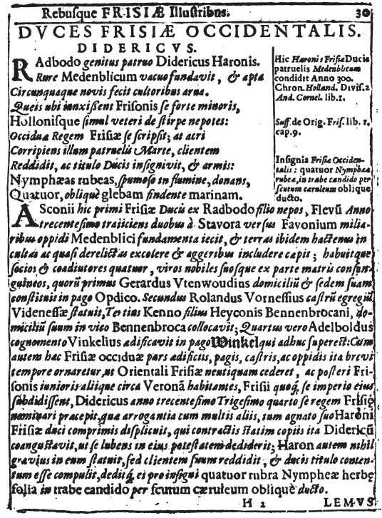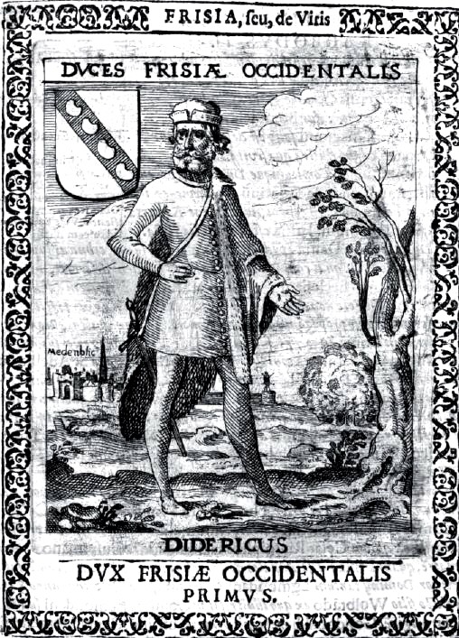 geboert iij C van v [AD 305] heren ende edelen, als van enen genoemt coninc Diderick van Frieslant, daer coninc Radbout of gecomen is. Ende dese hadde sinen woenstat ende coninclicken stoel in Medenblic.