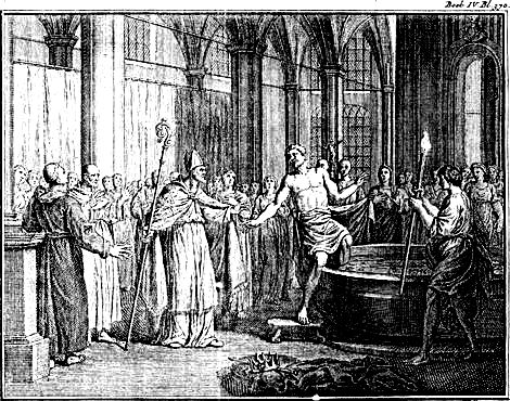 Doen seide die heilige biscop: 'Alle die van u ouders niet gedoopt noch in den heiligen kersten gelove gestorven zijn, die zijn in die pijn der hellen'.