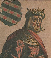 Portret van Floris V (juli 1254 - 27 juni 1296), bijgenaamd 'der keerlen god' ('god van de gewone mannen'). Door Michiel Vosmeer (1578). Uit: Principes Hollandiae et Zelandiae, Domini Frisiae. Cum genuinis ipsorum iconibus. |