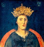 Twee keer een fantasievoorstelling van koning Radboud der Friezen. Links een ingekleurde gravure uit Pier Winsemius, Chronique ofte Historische geschiedenisse van Vrieslant (1662). Rechts een deel van een schilderij dat zich het voormalig stadhuis van Medemblik bevindt, van een 17de-eeuwse(?) anonieme schilder. |