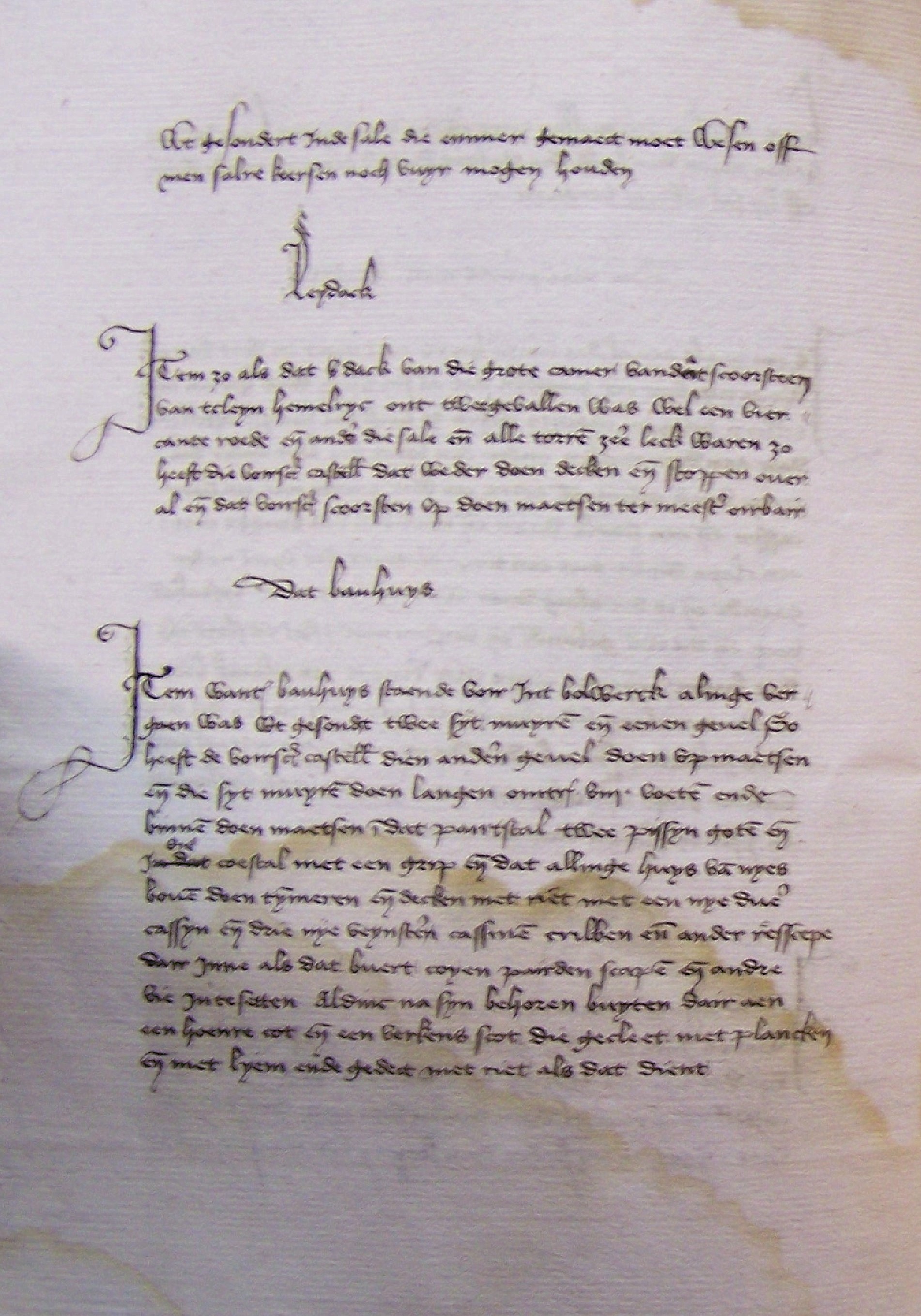 Omdat het gewelf van het Nieuwe Poorthuis (alwaar men in en uit gaat) door het hemelwater (dakdrup, in het document meermaals Oesijdrop genaamd) vergaan was heeft de kastelein een nieuwe luifel van riet laten maken. Dit uit voorzorg dat de bogen tussen het huis en de Molkentoren niet zullen vergaan.