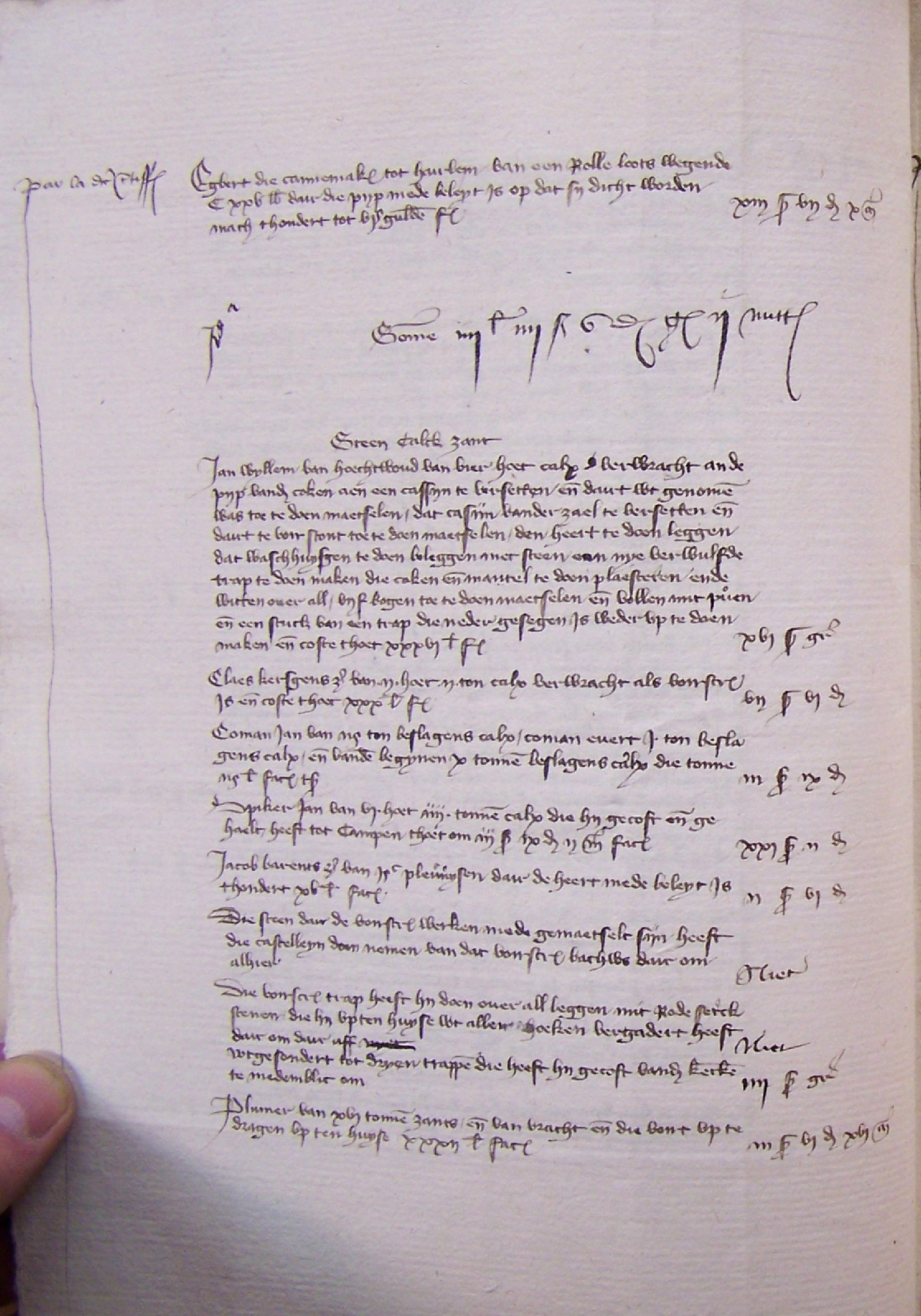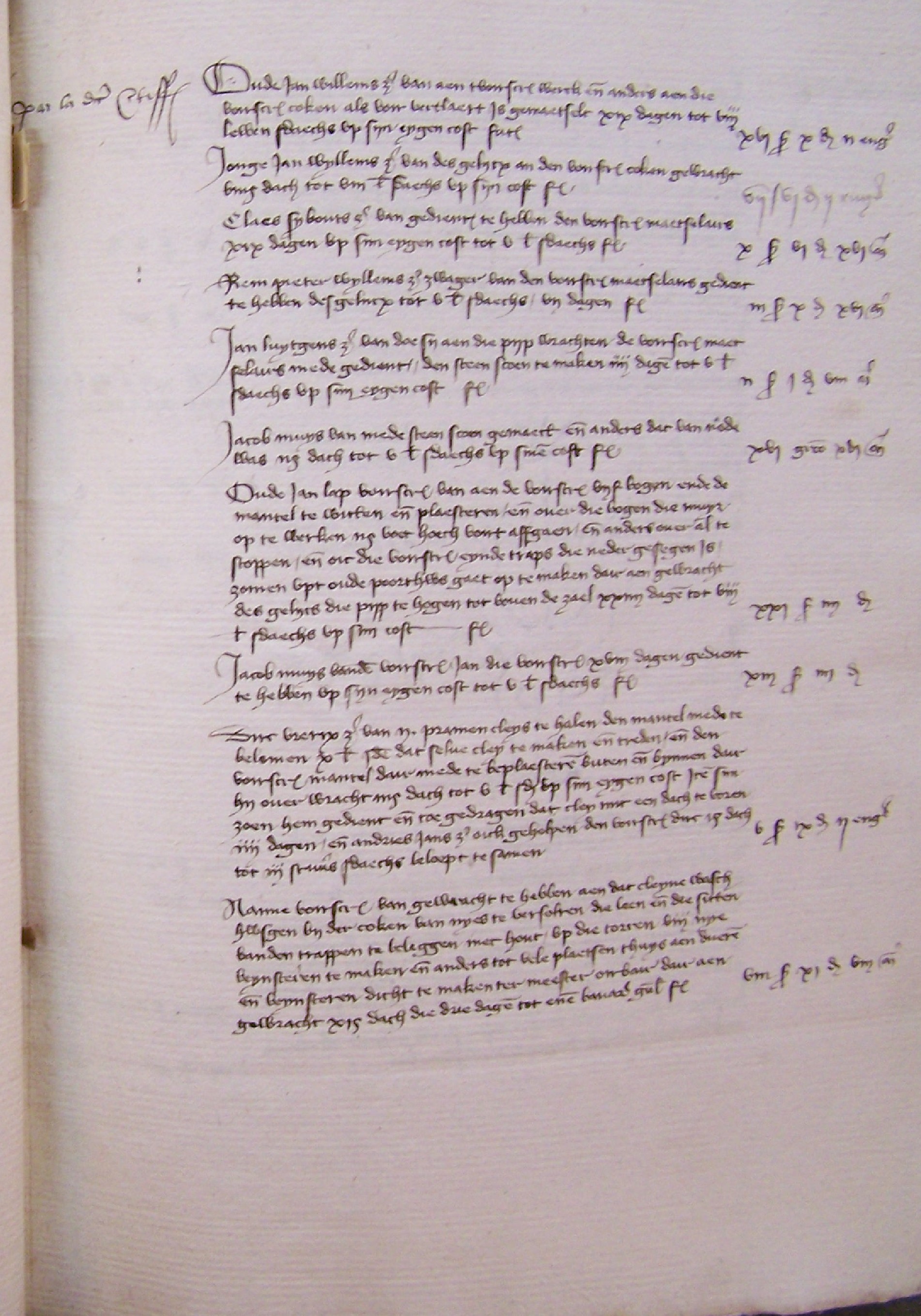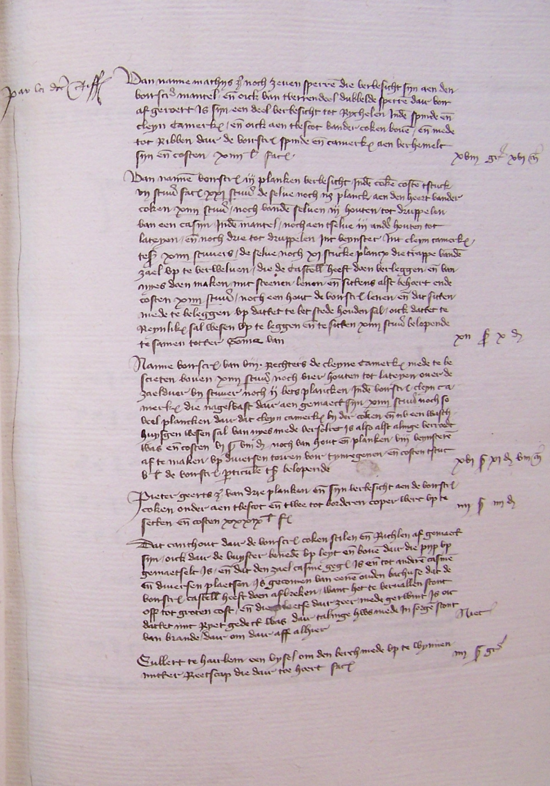 Omdat het dak van de Grote Kamer, nr. 10 rond de schoorsteen van het Klein Hemelrijk ongeveer één vierkante roed vervallen was en ook alle torendaken zeer lek waren, heeft de kastelein dit doen repareren.