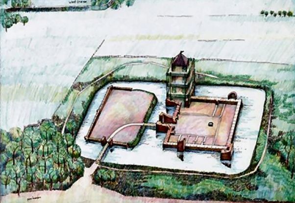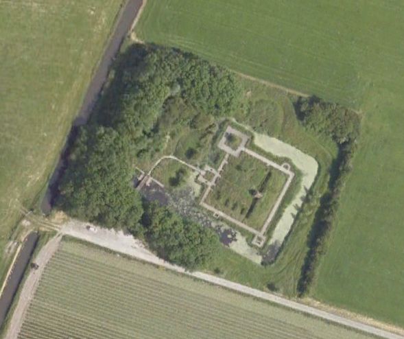 Het kasteelterrein nadat alle begroeiing was gerooid. Foto's: Jantine Leeflang Onder, de oude situatie naar Google-Earth |