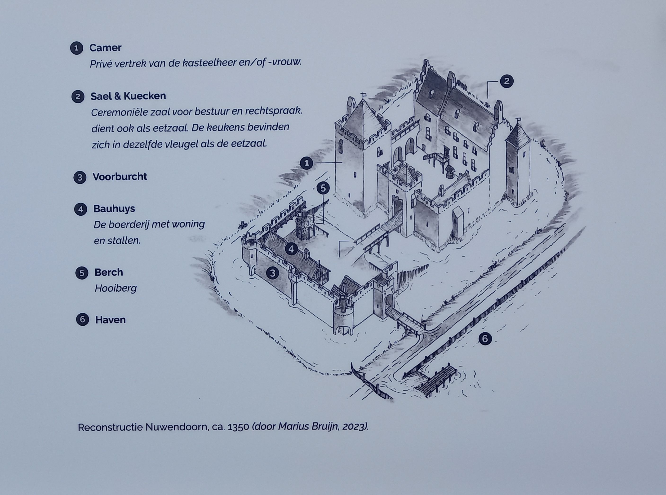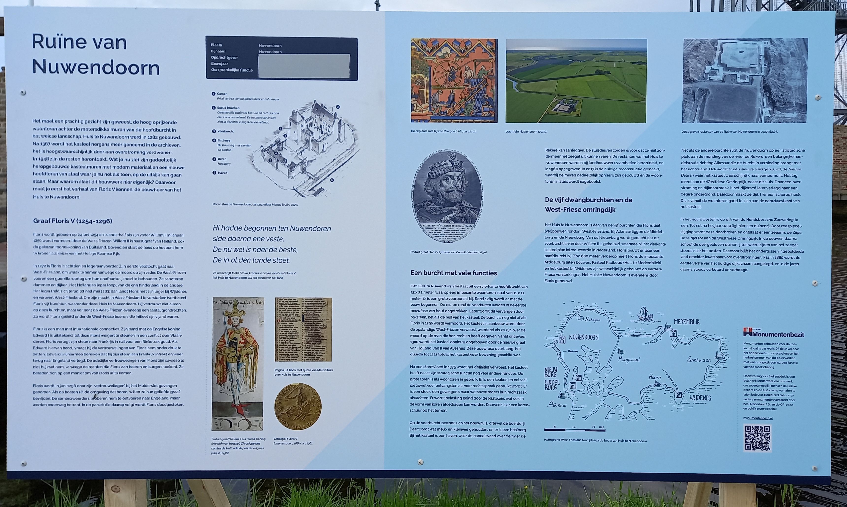 Verder heeft men met grote hardnekkigheid het voormalige kasteelterrein 'THuys te Nuwedore' genoemd, hetgeen aantoonbaar historisch onjuist is. De enkelvoudsvorm 'dore' wordt overigens niet door Melis Stoke, geschiedschrijver van de Hollandse graven uit de 13e eeuw aangewend. We zien dit ook niet in andere documenten terug. De 'clerc' van de graaf gebruikte in zijn Rijmkroniek in ieder geval een meervoudsvorm 'doren' of 'dueren', dit met betrekking tot een soort van toponiem: "..Hi (=Floris V) hadde begonnen ten Nuwendoren.." en: "..Ende braken thuys ten Niwendueren..". De enkelvoudsvorm 'dore' doet in dit verband wel erg vreemd aan. (Zie het artikel: Inzake de naam Nuwendoorn.)