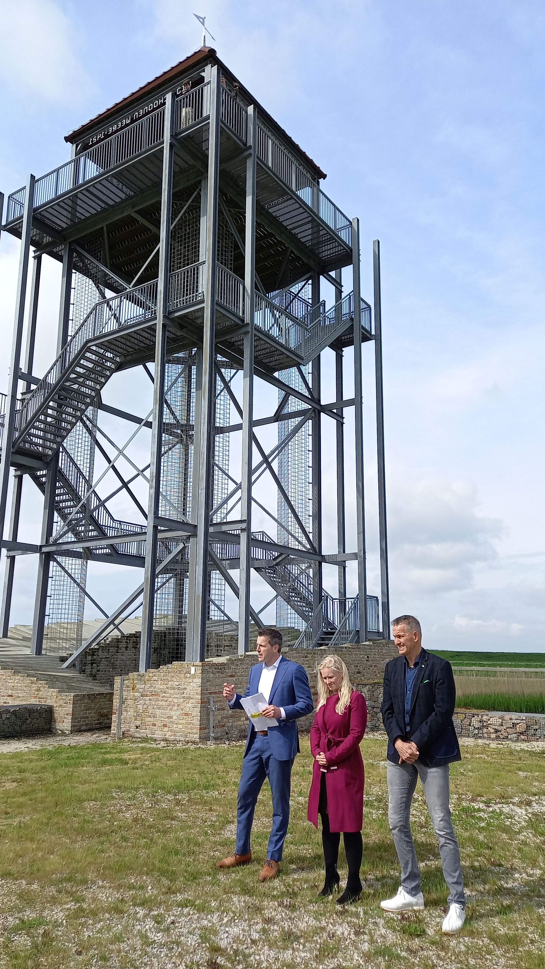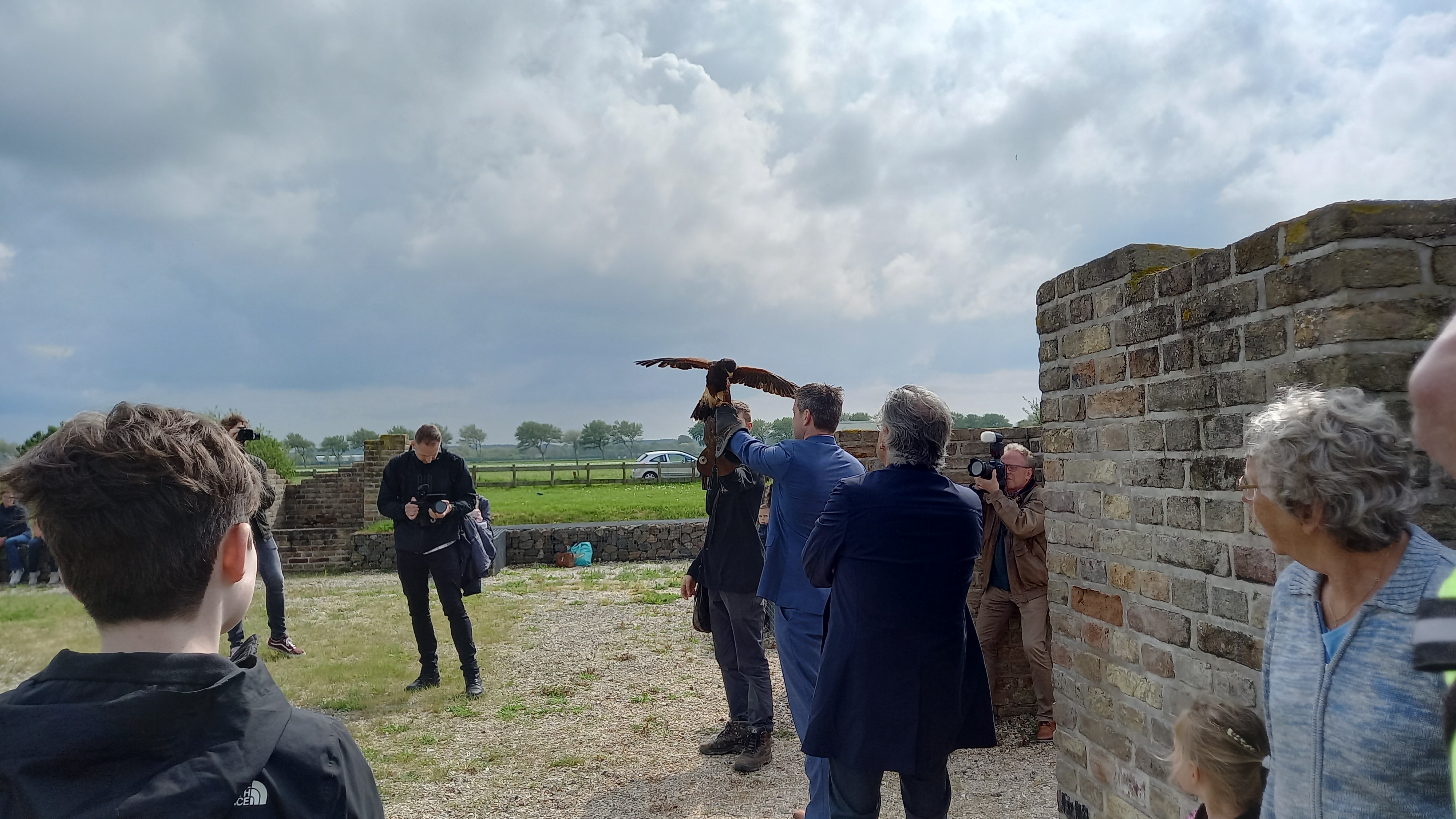 De officiële opening van het kasteelterrein vond plaats op 6 juli 2011 door gedeputeerde Elvira Sweet en burgemeester E. Vermeer van gemeente Harenkarspel, gevolgd door een publieksdag op 23 juli. De onderstaande foto's geeft een indruk van een meer architectonisch, dan een historisch verantwoord kunstwerk (met alle respect voor de ontwerper Paul van Vliet). Of dit terrein toegevoegde educatieve waarde heeft gekregen ten opzichte van de oude situatie, is nog maar de vraag. In ieder geval draagt de Latijnse tekst dat afkomstig is van de bekende ruiterzegel van Floris V " S' Florencii.Comitis.Hollandie " (S' staat voor Sigulum = zegel) op de metalen plattegrond daar verder niet aan bij. Het valt verder te bediscussiëren of de uitkijktoren op de plaats van de voormalige donjon, een toegevoegde waarde waarde heeft. Helaas ontbreken de contouren van de woonvertrekken op het terrein en zijn, volgens de aanwezige plattegrond, zonder enig bewijs stallen in de hoofdburcht gesitueerd. De overkapping van de vorige eeuw van de waterput paste blijkbaar niet in het beeld en is in een uithoek ver van het kasteelterrein weggezet.