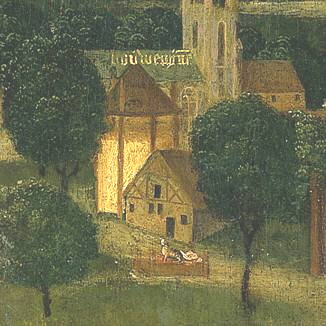 | Leidekker aan het werk. Uitsnede uit een 15e eeuwse afbeelding. (Wenen, Österreichische Nationalbibliothek, hs 2533, fol.12) | Timmerlieden aan het werk. Fragment uit een miniatuur uit: Chroniques et Conquesters de Charlemagne (David Aubert), boekdeel III (Brussel, Koninklijke Bibliotheek, hs. 9068, fol. 203) | Middeleeuwse afbeelding van een 'zes- of zeven roedige' hooiberg. (Bron: Nederlands Hooiberg Museum) |